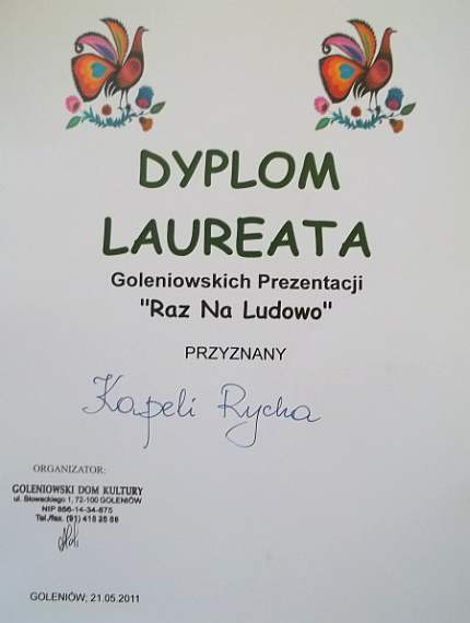 Za ok. 11 minutowe prezentowanie 4 utworów (I wzięna se - Kulice, Kulice - Marysieńka - Jakem z Tobą chodził.) kapela została dobrze zauważona i dyplomem doceniona.